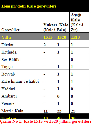 Bunların dışında 1520 yılında Yukarı Hemşin ve Aşağı Hemşin dizdarlarından başlayarak tüm personelin ne kadar bedel aldıkları ve kalelerde bulunan mühimmat ve ambarlardaki zahire konularından da bilgi verilmektedir.