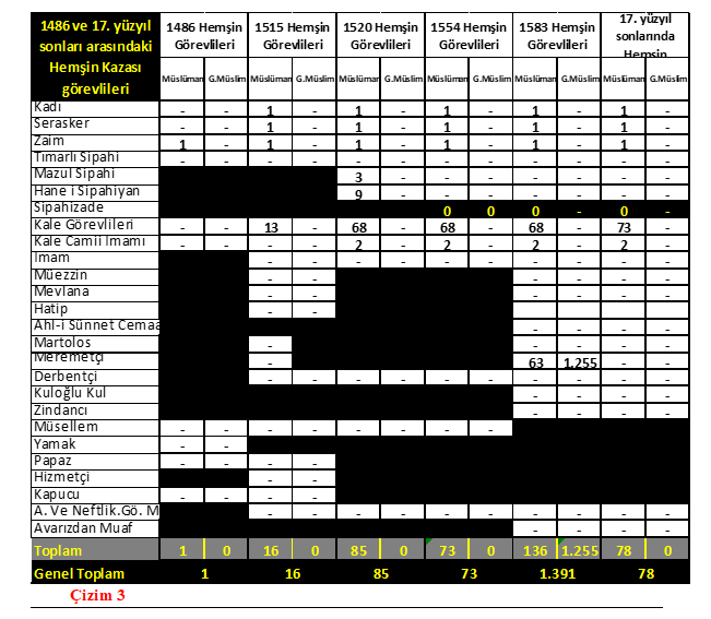 Bu defterlerde karşımıza çıkan, fetih öncesinden kalma Hemşin yer adlarından Meydan, İncürlük, Çat, Baş köyü, Kuş ova, Kara Hemşin gibi günümüz Türkçesinde bile yaygın olarak kullanılan adlar ile Peçenek, Hun, Kuman/Kıpçak, Uz (Oğuz), Hazar, Akkoyunlu Türk boy ve kavimlerine işaret eden yer adları, bu coğrafyada yaşayanların gayrimüslimlerin çoğunun Gregoryen inancında da olsa etnik kimliklerinin ne olduğunu gözler önüne sermektedir.Ayrıca kazada bulunan Kale-i Bala ve Kale-i Zîr’de görevli komutan, imam-hatip, subay, fenerci, demirci, topçu ve erlerden oluşan 70 kişilik Müslüman görevliler ile birlikte Müslüman nüfus 287’ye ulaşmaktadır. Bu durumda Müslümanlar nüfusun %38,1’ini, Gayrimüslimler de %61,9’unu oluşturmaktadır.
