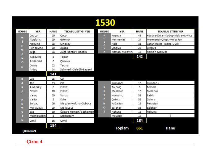 1530 Hemşin bölgeler ve nüfus dağılımı